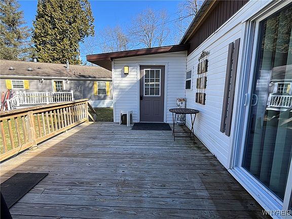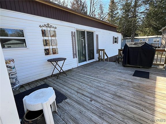 Welcome to this well-maintained mobile home, ideally located in the desirable village of Ellicottville. Just a short walk to local restaurants, shops, and all the charm the village has to offer. Step inside to find a welcoming mudroom with plenty of space to store coats, shoes, and ski equipment. The open and spacious living area provides a great place for relaxation or entertaining, with a large kitchen complete with newer appliances. The adjacent eating area features a sliding glass door that leads out to a deck. The bump-out design creates a generous family room surrounded by windows, bringing in natural light and a bright, airy atmosphere. There are three private bedrooms, providing ample space and privacy. One bedroom features a private deck, offering a beautiful view and perfect spot to unwind and enjoy the outdoors. With two full bathrooms and an in-unit laundry area, you'll have everything you need for comfort and convenience. All furnishings (minus some personal items) are included, making this home truly move-in ready. Short-Term Rentals are allowed. Don't miss out on this wonderful opportunity to own a piece of Ellicottville – perfect for full-time living, rental investment, or a cozy getaway!