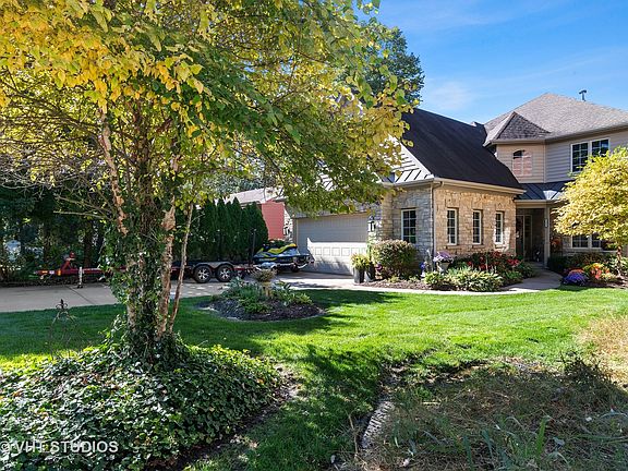 INDULGE YOURSELF IN THIS AMAZING LIFESTYLE AND ALL THIS PROPERTY HAS TO OFFER! This custom, executive built home is a hidden gem, nestled on the Fox River. Perfectly situated to absorb all the gorgeous views of the river. Enjoy boating, jet skiing and kayaking, at your fingertips. Impeccably designed and constructed, this home is a rare opportunity to live minutes away from St. Charles Country Club while having access to launch your boat into the river from your own backyard. Enjoy 5,000 sq.ft., 3 levels of living and unparalleled outdoor leisure w/ dock, boat lift, expansive Trex Deck, fire pit, hot tub and the most spectacular views all year round! Pride in ownership shines through adorning attention-to-detail and flawless finishes & decor including hardwood floors, extensive millwork, soaring tall ceilings, and SO much more. Gourmet kitchen boasts Wolf range, Viking refrigerator, island, separate eat-in area and opens to the family room with picture window. Grand primary suite featuring large seating area, FP, balcony, private W/D, and spa-like bath w/ marble jacuzzi & shower surround, heated floors, and Instant Hot Water System. Each bedroom boasts an en-suite with it's own full bath. Two steam showers on 2nd and lower levels. WALKOUT, finished lower level w/ 10' ceilings includes 2nd family room, built-in bar, full bath, bedroom, and exercise room (or 5th bedroom). Heated floors in lower level and garage. Immaculately maintained landscaping across all levels! The detail in the landscaping is breathtaking. The advantage to boat, jet ski, and kayak in your own backyard while being minutes from downtown St. Charles, restaurants, and entertainment! Indulge in this lifestyle and all it's amenities. This oasis is an absolute must see!