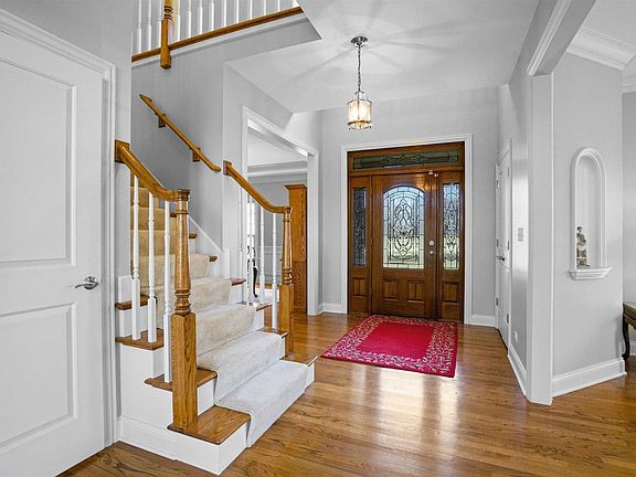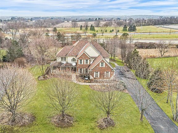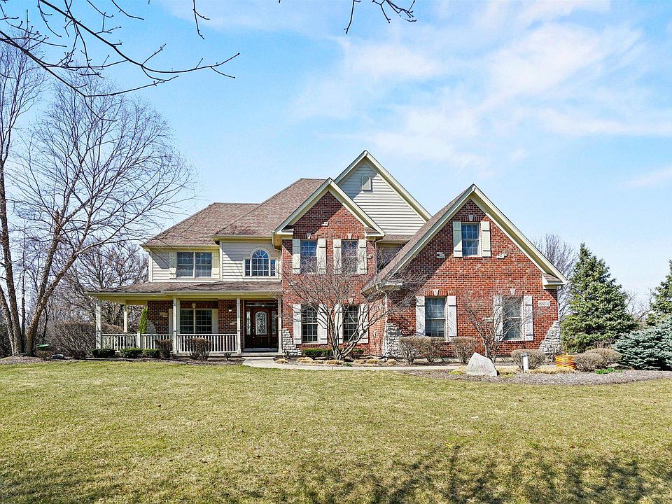 This Impeccably Maintained One Owner Home is Located in Coveted Red Gate Ridge of St Charles! Some of the highlights of this property include: Switchback staircase, 4 Bedrooms, 4.1 bathrooms, 3 car sideload garage, hardwood floors, crown moldings, well appointed kitchen with bayed dining area, volume and 9' ceilings on the main level, solid two panel doors throughout, finished English basement, inviting front porch, tiered paver patio with firepit AND a gorgeous sunroom to enjoy the gorgeous sunsets! The timeless brick, stone and hardie board siding with 50 year warranty is well designed. As you step inside you are greeted by an open foyer, cozy living room & separate formal dining room with tray ceiling, designed to accommodate any family gathering. The expansive family room is the heart of the home and features a 17' floor-to-ceiling stone fireplace, is light & bright with lots of windows. Convenient first floor private office situated off of the family room, has a glass entry door. Beautiful gourmet, eat-in kitchen with recessed lighting, stainless steel appliances, Bosch double oven, Thermador gas cooktop, spectator height breakfast bar, Silver Maple cabinetry, granite countertops, generous amount of counter space & six foot atrium door that leads to the amazing sunroom with tiled floor & vaulted wood plank ceiling! The fist level is competed by a laundry room that includes a stand up cabinet dryer, overhead cabinets, sink & coat closet. Upstairs, bedroom sizes are generous and include an amazing master suite adorned with 10' tray ceiling, dressing area, his & her walk-in closets, deluxe en suite bath with 11' tray ceiling, separate vanities, whirlpool tub, private water closet with window & separate shower. Bedroom 2 has a walk-in closet and private en suite bathroom. Bedroom 3 has bathroom door access & walk-in closet bedroom, bedroom 4 has walk in closet. Head downstairs to the English, deep pour basement with newer carpet, recreation room with brick raised hearth fireplace (projector and screen stay) wired for surround sound, full bar, full bath PLUS a 16x12 storm or wine cellar surrounded by an 8"cement ceiling, walls & floor (located under the sunroom) currently used for storage (shelves will stay) Entire interior freshly painted & carpets cleaned (2021), new sump pump (2020), HVAC replaced (2018), Roof is approximately 16 years old. Award winning St. Charles blue ribbon schools, convenient to Randall Rd corridor, shopping & dining! MUST SEE!