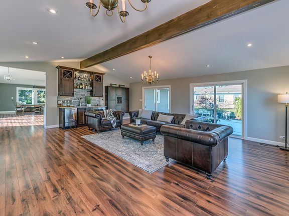 WRITE YOUR OFFER AND MOVE RIGHT IN! REMODELED THROUGHOUT. FULL DESIGN OVERHAUL ON THE FRONT EXTERIOR. ENTERTAINING HOME GALORE ON ALMOST 1/2 ACRE LOT. FROM THE MOMENT YOU ENTER THE HOME YOU WILL BE WOW'ED. VAULTED CEILINGS WITH RECESSED LIGHTING IN THE LIVING ROOM, KITCHEN AND DINING ROOM. HUGE BRIGHT LIVING ROOM WITH DOUBLE SLIDING PATIO DOORS TO PATIO AND WET BAR WITH KITCHENAID ICE MAKER AND BEVERAGE COOLER. DREAM KITCHEN WITH FULL KITCHENAID APPLIANCE SUITE INCLUDING DOUBLE OVENS WITH CONVECTION, BUILT-IN MICROWAVE, WARMING DRAWER, INDUCTION COOKTOP, PREMIUM REFRIGERATOR/FREEZER AND DISHWASHER. QUARTZITE COUNTERS AND CABINETRY WITH SLOW-CLOSE DOORS AND DRAWERS. DINING ROOM WITH 16' SLIDING PATIO DOORS OPEN TO INTERLOCK PATIO, BUILT-IN BENCH AREA AND 2 SIDED CRAB ORCHARD STONE WOODBURNING FIREPLACE. MASTER SUITE FACING SIDE PATIO WITH 6' SHOWER IN THE MASTER BATH. 2 ADDITIONAL BEDROOMS FACE THE LARGE REAR YARD. FULL HALL BATH WITH TUB. HEATED AND OVERSIZED 2-CAR ATTACHED GARAGE WITH SLIDER TO PAVER PATIO AND CAN BE EASILY UTILIZED FOR ADDITIONAL ENTERTAINING. LAUNDRY AREA WITH CUSTOM CABINETRY, SINK AND HIGH-EFFICIENCY FRONT-LOADING WHIRLPOOL BRAND WASHER AND DRYER SET. REAR YARD MAKES YOU FEEL LIKE YOU ARE ON YOUR OWN ESTATE. IF YOU WANT FRESH EGGS, THERE'S A CHICKEN COOP AT THE REAR OF THE YARD. FURNACE IN HOME AND GARAGE ALONG WITH HOT WATER HEATER ARE BOTH NEWER. MAINTENANCE-FREE EXTERIOR WITH VINYL SIDING AND ALUMINUM TRIM. 18'X6' STORAGE SHED. MAKE THIS YOURS BEFORE IT IS GONE!