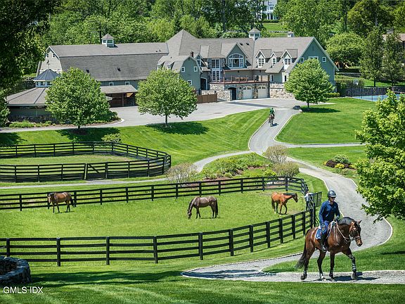 Double H Farm is an extraordinary one of a kind equestrian compound on 87 acres of lush landscaping. The 4 story main house sited high w/ breathtaking panoramic views and outfitted with resort like amenities is the ideal retreat. Two additional renovated homes, two state of the art barns w/ stalls for over 40 horses, trophy lounge , party barn, paddocks with run in sheds, 2 covered hot walkers, staff apts., tranquil pool, tennis court, indoor & outdoor riding rings & a jumping derby field are just some of the exceptional amenities this world class equine facility offers. Meticulously maintained to the highest standards.