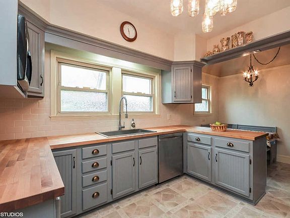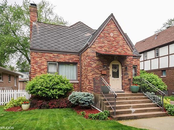 The CHARM, SPACE, & ARCHITECTURE will amaze you in this 3 bdr., 1.75 bath, ALL BRICK Cape Cod found on a quiet, well groomed, tree-lined street. You'll find yourself instantly gravitating towards the 10FT. cove ceilings, gorgeous chandeliers, vintage glass door knobs, & over-sized solid oak trim throughout the house. Spacious eat-in, recently updated, kitchen has grey cabinetry, butcher block C.T.'s, handcrafted vintage light fixture, top of the line chrome faucet. Upper level features the ENORMOUS Master Suite (45x18) with 2 HUGE walk-in closets, 3/4 bath, laminate flooring, skylights, & cathedral ceilings. Your own private suite is truly an oasis. M.L. boasts 2 bdrs & FULL updated (ALL WHITE) bathroom. Partially finished area located in (daylight) basement provides even more usable space + an unfinished area that includes all the utilities & a workshop. Fenced-in, neatly landscaped backyard w/brick paver patio is ideal for entertaining. [HW flooring under carpeted areas]