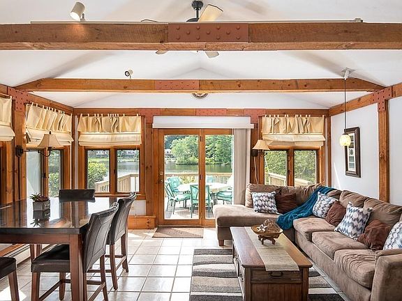 WATERFRONT on Cranberry Meadow Pond with 150 feet of water frontage on East Side offering more hours of sunshine and spectacular sunsets. 74 acre lake for boating, swimming, fishing and water skiing. This location is so unique, don't worry about being on top of your neighbors, the lot offers fabulous privacy with open areas for garden enthusiasts. This single level home is meticulously maintained and tastefully decorated with plenty of windows to appreciate the gorgeous location. Living area with spectacular views, vaulted ceiling with wood beams. The wide pine floors in this house glisten. Master bedroom with walk in closet The kitchen is bright and sunny with granite counters and newer appliances that all stay for new buyers. Open, level lot with perfect sandy beach to enjoy along with a dock for your boats. Not a drive by... you HAVE to see this one to appreciate all that it offers! New 3 bedroom septic being installed by sellers