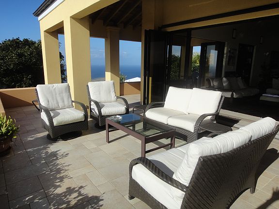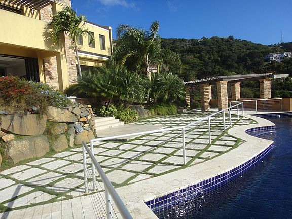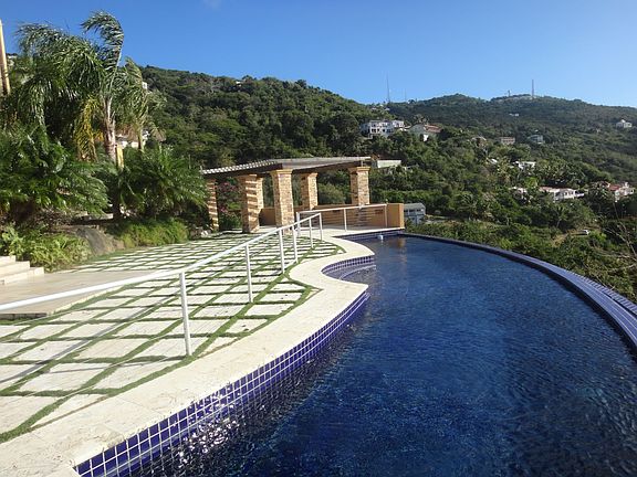 Located in a gated family compound. Extremely well built and beautifully finished. Driveway is gated at two separate entrances. Spacious and open with panoramic Harbor views overlooking St Thomas, Hassel and Water Islands, airport and beyond. Large infinity edge pool. Solar reliant.