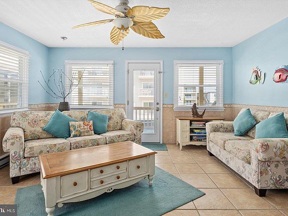 A cozy, classic Ocean City-style bungalow awaits you in this Bright and Airy 2 Bedroom/ 2 Full Bath unit just 2 buildings off the ocean! See the waves roll in from your front balcony in this ideal mid-town nook where the density of beach-goers is surprisingly low, away from the buzz of Downtown and just south of High Rise Row. Conveying Fully Furnished as shown, this Turn-Key condo has 2 years of Rental History with just enough weeks booked for 2023 to offset most of your expenses and still enjoy plenty of beach time yourself! Updates to the condo include: all new Windows in 2022, new A/C Wall Units in Bedrooms in 2022, fresh paint, Exterior electric meter boxes replaced in 2022, new ceiling fans, new toilets and Tiled Floor in Master Bath in 2022. Store all of your beach gear in the 4x7' storage locker and rinse off the sand in the Outdoor Shower. Plenty of parking with 4 spaces under the building and 4 in the private lot behind the building. This small, self-managed 4 unit building has been lovingly maintained and retained low Condo Fees at $3,500 Annually which includes the condo's Water Bill.