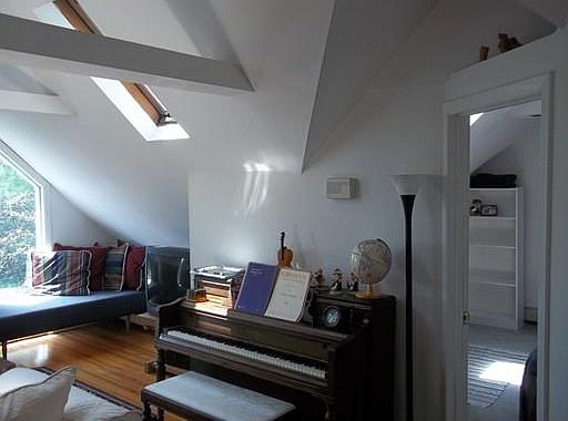 Hillside Villa with vista balcony views. Minutes to downtown Boston but surrounded by trees. Private Entrance welcomes you to an open living room with fireplace surrounded by floor to ceiling windows and beamed cathedral ceilings. Large rooms filled with natural light, high ceilings, hardwood floors in living room, carpet in bedrooms, skylights in every room. Victorian grandeur with modern interior, amenities and energy efficient systems. Many storage nooks, closets, laundry in suite, whirlpool tub and deck to relax on. Extended garage can fit bikes as well as a car. Steps to T to Boston and Bus to Harvard Square. Near walking trails, shops, cafes, ice rink and swimming pool. Professionally managed, many recent updates include newer heating systems and garages. Home warranty included.
