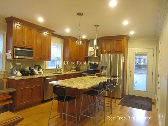 Available 7/1/17. Brookline Village 4 bedroom apartment with two parking spaces included in the rent. This is the top 2 floors of a 2 family home. Eat-in kitchen with granite counter tops, kitchen island, and stainless steel appliances. Equipped with dishwasher, disposal, refrigerator, range/oven, and built-in microwave. Hardwood floors throughout. Large windows capture plenty of sunlight. Modern baths. Central A/C. Call, text, or email for a viewing today. 2 parking spaces included in the rent.