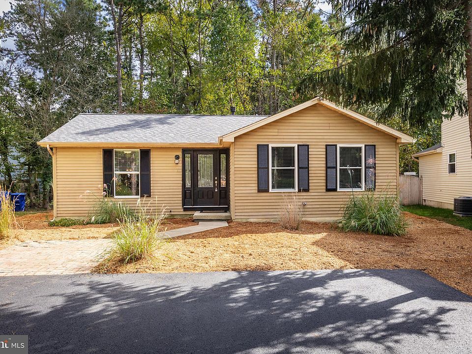 New Price!! Kings Grant Ranch - Turn key and ready to go! Cul-de-sac location with fresh asphalt driveway parking and backs to common wooded space! Open concept Living area is Gorgeous!! No sharing bathrooms in this property - both Bedrooms offer their own bathroom option with the Primary exclusively accessed inside the bedroom suite! Vaulted ceiling, wood flooring, Remodeled Kitchen featuring top of the line design with Stainless Steel appliances, farmhouse sink and granite counters. Spacious Dining area leads into the rear Family Room offering a beautiful wooded view and Half bath along with access to the side deck. 2 Bedrooms and 2.5 Baths in this home! Additional improvements include all NEW in 2021: Entire Kitchen, Front door, Skylights, Roof, Windows, LG Washer and Dryer, Carpeting in bedrooms, Interior doors and hardware, Double back door, and Paint throughout! Don't miss the Deep and dry Crawl space perfect for tubs and bins of storage. This community offers endless outdoor activities - some of which include lake access, tennis court, community pool, walking and biking paths and trails. Home is being sold in present as is condition with a home warranty included. Terrific location, nothing to do but move-in and Enjoy! Fencing is permitted.