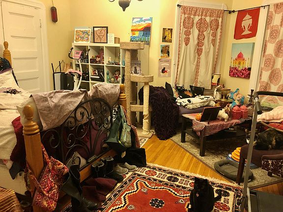 *Available April 1st * Elegant studio for sublet in a multifamily Victorian house in the heart of Winter Hill in Somerville. Close to Magoun Square, lots of restaurants, bus stops, CVS, and the new Green Line Extension Station coming in the Spring. Walking Distance to the Red Line. Sunny, well-lit, 10 foot ceilings make this studio feel even more spacious! Lots of windows with views of lovely trees in the Spring/Summer. Heat and hot water included. Beautiful wood floors, comes with some furniture (shelving unit, kitchen cart, window AC unit). Granite counter tops in the kitchen! Well-maintained front yard and back yard for shared use. Stained glass window panel and sitting room in the common area. Tiled bathroom. Laundry is in the basement of the house and free. Street Parking. The other neighbors in the house are quiet and respectful. Perfect for a young professional or a single person. Cats are allowed. The cats in the pictures are not included :) I have lived here happily in this unit for five years, the only reason I am moving is because I bought a house! Ask me any questions and I can answer them, even about the utilities/costs. The sublet would run from April 1st to August 31st, then you can sign a new lease with the landlord if you like. First month's rent and security deposit are required, no broker fee. Must have good income, references, and good credit to be approved. Send me a message or a text and we can set up a viewing in person or via Zoom!