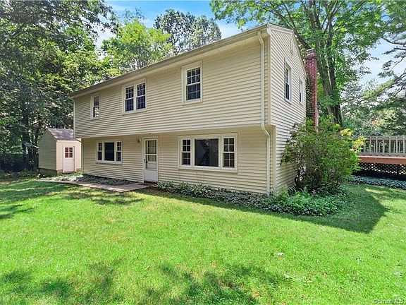 DO YOU TREASURE YOUR PRIVACY? Then consider this bright and sunny seven room front to back split style home, set on a private, level, landscaped 1.32 acre beautiful lot. Open living, dining & kitchen area with vaulted ceilings & large family sized deck on the main level. Three bedrooms and full bath on the upper level, and an exceptionally large (just remodeled) sun filled family room with a fireplace, half bath, large glass windows and a walkout to the rear yard on the lower level. A plus is the step down to a basement, utility room, laundry & storage area. A detached garage and central air conditioning add to the appeal of this home.