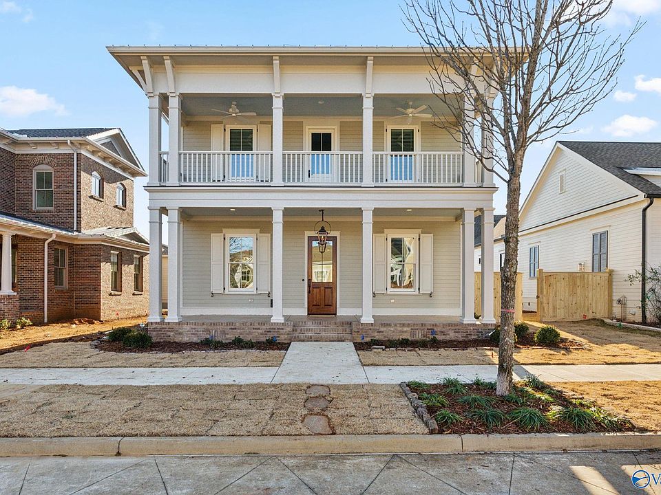 Under Construction-The coastal elegance of the Peachtree is immediately highlighted by the double front porches, gas lantern accent, & fiber-cement siding. The foyer opens to the office with impressive built-ins & the large dining room. The kitchen features an oversized island with seating, butler and walk-in pantries, French-door ovens, & gas range. The primary suite with a double vanity, tub, walk-in shower, and large closet enjoys private access to the upstairs balcony. Additionally, there is a loft (can enclose for flex space), laundry, & 2 additional bedrooms with shared double vanity bath. Lookout over the courtyard from your back porch & walk the breezeway to the 2-car garage.