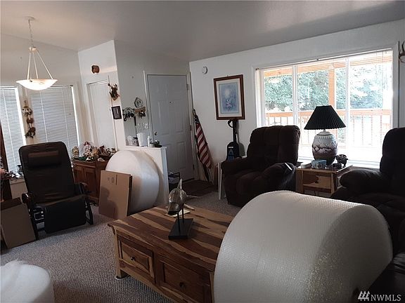 Enjoy country living on approximately 4.3 acres on Salmon creek. New carpeting, water heater. flooring and appliances. Air conditioning for these warm summers from Heat pump. Spacious living in approximately 1200 sq ft interior with 2 bedrooms, 2 baths including laundry room and large covered deck. Out buildings for additional room for storage and open space for your toys.