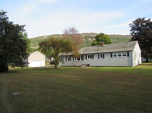 A spectacular view of the Mt Tom range 365 days a year come with this cute 5 room ranch home on a quiet street. Good sized kitchen with plenty of cabinets and countertops, liv.rm with large picture window,3 bedrms,1.5 baths, entry/center hall with 3 closets, and a sunny 3 season porch. A number of updates come with this property including replacement windows, new Buderus Boiler and hot water tank, new garage door,central vac. and newer appliances. A large sunny yard with an oversized garage/barn offer many opportunities!