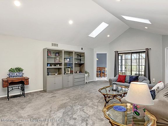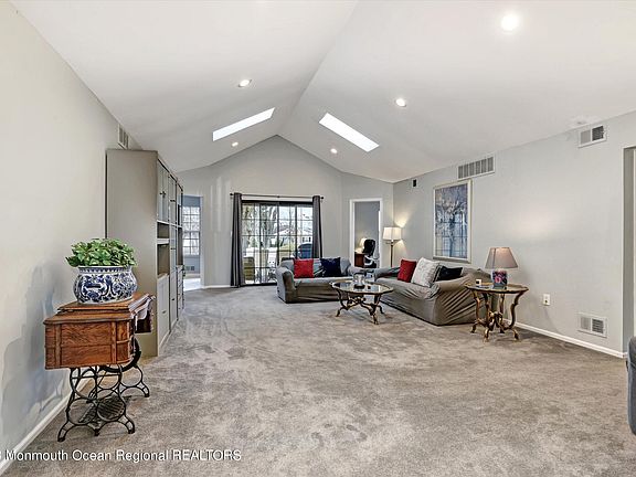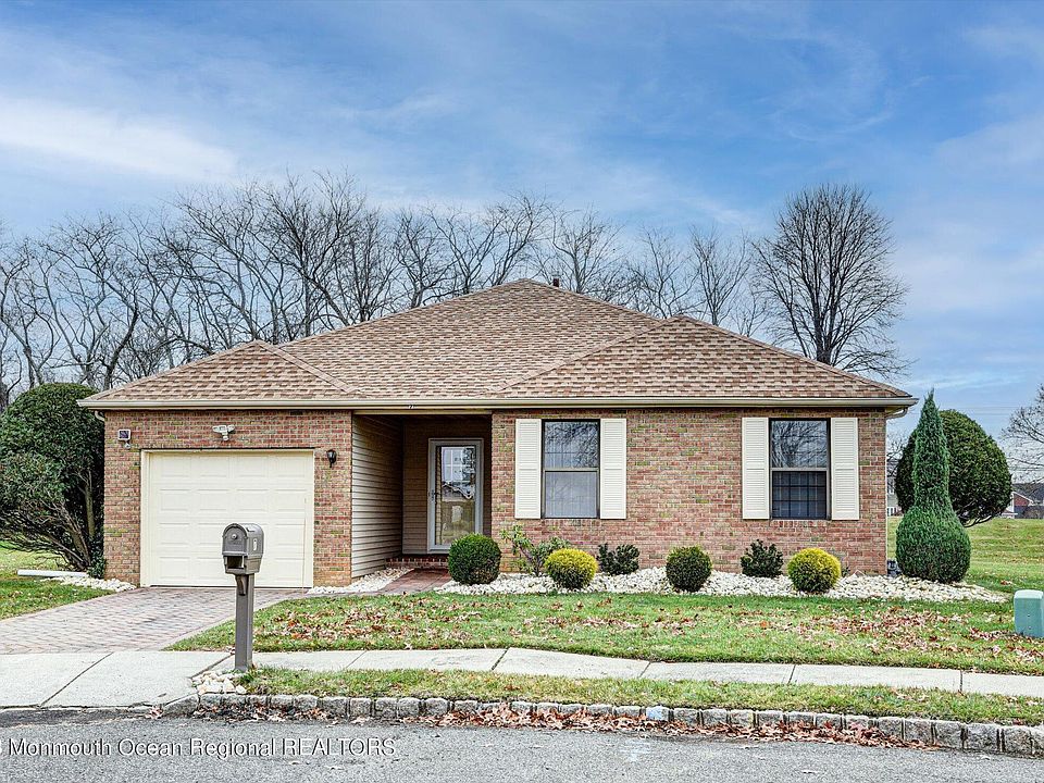 Discover serenity and comfort in this sought-after Greenbriar 55+ community! Nestled in a tranquil cul-de-sac, this individual home boasts a picturesque setting, backing onto an expansive yard with rolling hills and majestic trees. Start your mornings with a cup of coffee on the charming paver patio, surrounded by nature and wildlife. Step inside this spacious Cambridge model featuring cathedral ceilings and skylights in the living area, creating an airy and inviting atmosphere. The kitchen renovated a few years ago, showcases granite counters, pendant lighting, a complete appliance package and recessed lighting. Enjoy the peace of mind with a newer heating and air-conditioning systems, complemented by a Generac whole house generator. This meticulously maintained home offers two bedrooms, two bathrooms, plus a den and a formal dining room. The master bedroom includes a walk-in coset, and both bathrooms have been updated. A newer roof ensures long-term durability. Embrace an active lifestyle with community amenities like a pool, tennis courts, bocce, and a variety of clubs, including pickleball and gym facilities. Socialize at community parties and enjoy entertaining shows. Centrally located near Route 18 and Route 9, this residence provides convenient access to shopping, highways, restaurants, and is just a short drive to the Jersey Shore. Explore the beauty of Monmouth County Park System, making every day a retreat in your new home. Low HOA maintenance fee of $220 per month completes this idea 55+ living experience. Don't miss the chance to make this Greenbriar gem yours.!