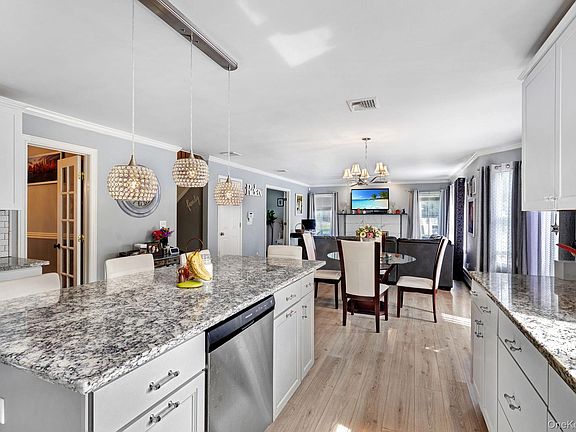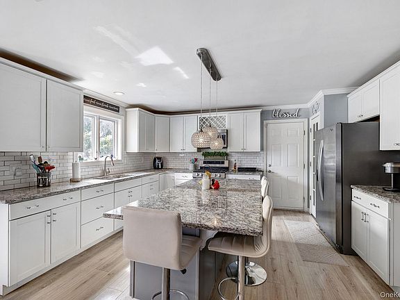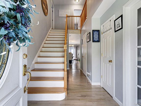 Welcome to this charming Mid-Hudson Valley Colonial in Maple Hill, Goshen. A 4-bedroom, 2.5-bath with 3,309 sq ft of living space with a great layout. This home has plenty of room for both everyday living and entertaining. The kitchen has been beautifully redone (2020) with shaker cabinets, granite countertops, and stainless steel appliances, opening to a bright breakfast area and cozy living room. A formal dining room with French doors, fresh paint throughout, new laminate floors, and oversized windows make the main level feel warm and inviting. Upstairs, the primary suite offers a private bath and generous closet space along while the bonus room over the 2-car garage is perfect for a home office, gym, or playroom. Step outside to enjoy the multi-level deck with an above-ground pool, all set on nearly 2-acres of land with fruit trees. Don't miss this opportunity!