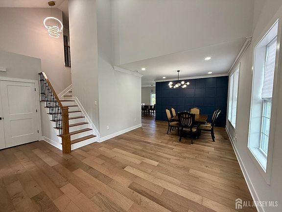 Welcome to this beautifully remodeled single-family home in the desirable Robbinsville community. This spacious residence offers four bedrooms and four and a half bathrooms, thoughtfully updated with modern finishes and conveniences. The home features a wide front porch and an inviting two-story foyer with hardwood flooring and nine-foot ceilings. The gourmet kitchen boasts a stunning waterfall island, quartz countertops and backsplash, upgraded cabinetry, and brand-new stainless steel appliances, including a gas cooktop and oven. The breakfast area opens to a fenced backyard that backs to wooded green space, providing added privacy. Upstairs, you will find well-appointed bedrooms and updated bathrooms. The finished basement provides additional living space, complete with a dedicated office area and a full bathroom, making it ideal for work, recreation, or guests. This home also includes solar panels for energy efficiency, an EV charger in the garage, WiFi-enabled garage door openers, sprinklers, and lighting, as well as security cameras for peace of mind. Residents of this community enjoy access to a clubhouse with a gym, pool, and common areas. Tenants are responsible for all utilities, snow removal, and lawn maintenance. This fully renovated, move-in-ready home combines comfort, technology, and convenience. Schedule your showing today!