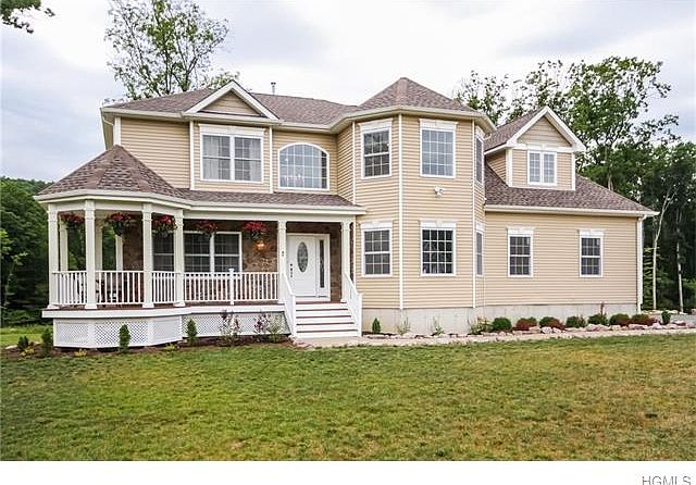 European craftsmanship abounds in this custom built better than new Victorian colonial that sits pretty on 3.5 flat acres in one of Woodbury's most prestigious neighborhoods. The columned wrap around porch beckons to you as you enter the grand two story foyer. This beauty boasts of crisp, clean lines and architectural details throughout the living and dining rooms. Granite countertops and island, floor to ceiling cabinetry, and stainless steel appliances make meal preparation a breeze. Breakfast area opens up to a bright family room with fireplace and marble surround. Bedroom/office and full bath finish off the first floor with gleaming hardwood floors throughout. Amazing master suite offers 3 walk in closets and master bath with jacuzzi tub, extra large shower, and double sink granite vanity. Three spacious bedrooms and bath with granite vanity complete this floor. Walkout basement ready for your finishing touches. Great commuter location, walk to golf course, Monroe-Woodbury schools, Woodbury recreation.