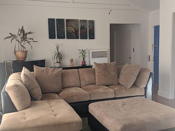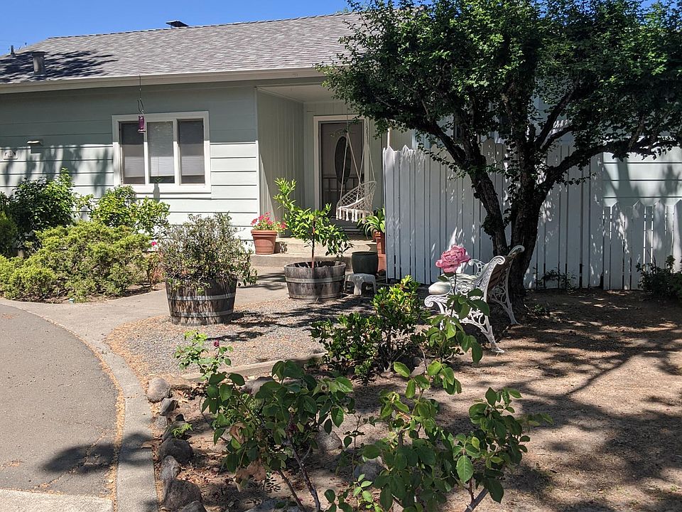 This charming, inviting, peaceful, bright and airy home wraps around a corner and couldn't have a more ideal location. First, it has a phenomenal relationship with the sun. If you are not an absolute fan of natural light then need not apply! The sunrise is first seen from the master bedroom window. Watching the sun rise in the breathtaking Napa Valley is the way to start a day. There is also generous first morning sun streaming into the comfortable dining area. And the kitchen corner window drenched in morning sun looks over another unobstructed view of the west side of the valley. The hanging chair on the front porch is another great way to get your morning dose of sunlight while enjoying a cup of coffee. And last but not least is the breezeway. In the morning hours, pretty much until 10 a.m., the morning light makes the breezeway a lovely place to have breakfast even in winter months or some coffee at the coffee bar. Sunrise Sanctuary is a uniquely shaped house, as it gently curves around the corner it sits on a large pie-shaped lot. You can see the many outdoor areas to enjoy, but the garden and the outdoor bathtub are the most unique extras. The house is located one block from the tennis courts and three blocks walking distance to downtown Calistoga. And very close is the trailhead to the Oat Hill Mine Road trail which is such a treat to have in our backyard (I included a picture from the trail). Lots of great living outdoors here. Indoors is very comfortable and cozy. It comes fully furnished with all the extras you would need, including new towels and bedding. There are houseplants strategically placed in every room chosen specifically for their ability to naturally clean the air. The master bath has been newly remodeled. New cherry bamboo kitchen and laundry room floor. Coming soon are brand new shutters for the windows approximately the second week of January 2022. The vaulted ceilings and the well laid out floor plan makes for "magical" living in this 2 bedroom, 2.5 bath home. It is a special place . The month to month rental price is $3500 per month. This includes DISH t.v., (plasma large screen in living room and both bedrooms), internet, utilities and landscaping. I listed "small dogs" in the pet section but it must be a dog that is well trained. I have had problems with dog and cat damage to the furnishings and have had to throw out carpets and furniture between renters. The property is ideal for a dog and for a well behaved one it could be a match! This home is a month to month rental with a three month minimum. The furnished condition is not negotiable. If you have need for some storage of personal furnishings there is a one car garage with storage loft that can be used for this purpose. The house is on, in my opinion, the best residential street in Calistoga. Every year there is a block party with live band. The neighbors are long time residents and are on friendly terms and know each other's names...quite unusual these days! It is important for us to find a good tenant that will be respectful to and appreciate this lovely neighborhood (i.e. no heavy partiers, etc.). Owner pays for water, trash, DISH t.v., internet, landscape maintenance.