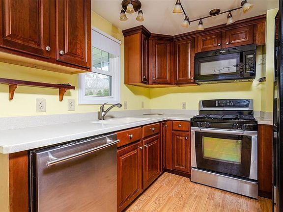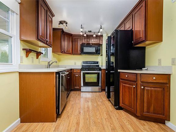 Adorable Cape Cod is ready for you to call it home! Updated kitchen with solid surface countertops and seamless sink, modern appliances including beautiful gas stove is ready for your favorite dishes to be created. Vinyl flooring and bright rooms with neutral colors. Upstairs bedroom has been remodeled with plaster ceiling, recessed light new vinyl flooring. Yard is semi private with a oversized one car garage and plenty of parking space. Ramp to the side door for easy access and insulated windows are a great icing on the cake to make this house a great find for a fortunate buyer! Don't wait!