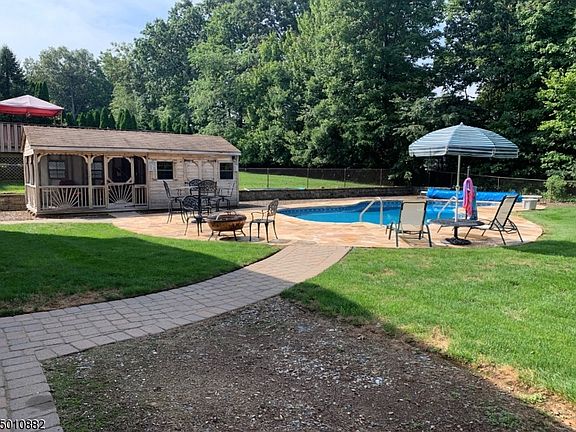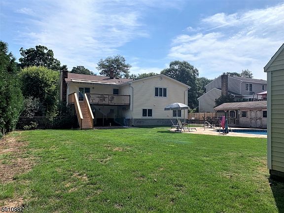 6 Bedroom home located in desirable Towering Oaks section of Rockaway Twp. Immaculate & Move-In ready! Freshly painted, hardwood floors just refinished, brand new carpeting on 1st floor Kitchen with center island breakfast bar, quartz cntrps, soft-close cabinets. 2nd flr features: bright entry foyer, LR/DR/kit open floor plan,4 bdrms, master bth w/jetted tub & stahl shower,main bath. Sliders from dining rm to deck overlooking the lrg level (fenced) backyard oasis. Lower Level: Fam Rm w/wood burning fireplace, Rec Rm w/ laundry+slop sink, 2 additional bdrms/office/den, powder rm, sliders to paver patio, Storage Shed & Pool house w/screened in patio. Newer A/C, furnace, amitrol expansion tank, In-ground pool w/new: liner,pump, filter,solar cover & heater 3yrs young. 2 Car garage and parking for 8+cars.