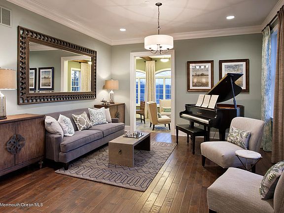 Located in prestigious Holmdel, Reserve at Holmdel is situated within the natural beauty of the surrounding areas. It is easily accessible from major highways and minutes from area shopping malls, public and private golf courses, and the PNC Bank Arts Center. These luxurious estate homes on home sites of 1 to 3 acres feature 4 bedrooms, 3-car garages, 10-foot first-floor ceilings and 9-foot second-floor ceilings. The impeccably appointed gourmet kitchen of the stately Weatherstone sets the tone for this impressive home. It boasts abundant counter space, a large island with seating, a utility cabinet, and access to the back staircase; and it is adjacent to the morning room, which features a cathedral ceiling and plenty of natural light.