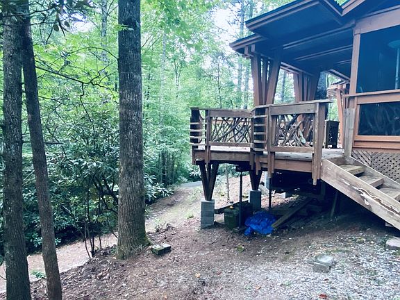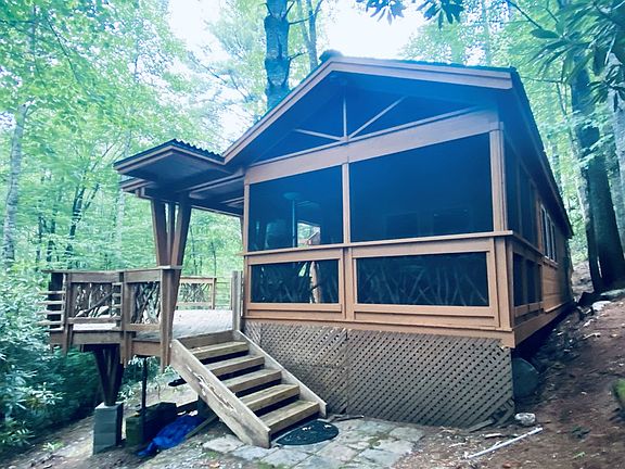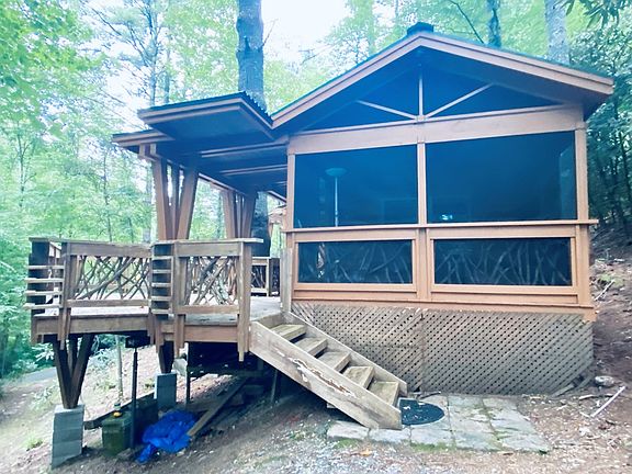 Simple Living in your very own Cabin In the Woods. Surrounded by the trees, this private home feels far away but in reality it is close to restaurants, shopping and grocery stores. Beautiful Laurel Lake is within walking distance and there's a view through the trees at the upper part of the lot. Huge partially covered Front Deck with character. 12' x 10' Screened-In Sun Porch. All wood interior with pitched open beam ceiling. Nice kitchen with well built wood cabinets featuring lazy susans and pull out drawers, lots of storage. Granite Composite Kitchen Sink. Breakfast Bar. Built in Desk. 1 BR, 1 BA with Loft. Walk outside to a back open deck from the bedroom. HOA includes use of the Lake, road maintenance, picnic area and weed eating. Boats, no motor. Live here and build a 2 BR home with a view of the lake next to you sharing the existing septic system, just pumped. Central Heat/Air, new motor. Lake View to be determined by your builder and house plan. Great neighborhood. Quiet, Convenient and Simple. Your Mountain Paradise awaits! NO DRIVE BYS PLEASE. REALTOR MUST ATTEND ALL SHOWINGS.
