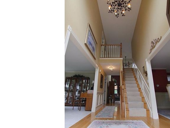 Sheer elegance describes this four bedroom two and a half bath two story center hall colonial. This home features a dramatic two story foyer with hardwood flooring. The formal dining room also has crown molding and hardwood flooring as well. The beautifully decorated family room offers a vaulted ceiling with skylights and a fabulous wooden hearth surrounding the gas fireplace for those warm and cozy evenings. There is also a study/office conveniently off the family room. The large eat in kitchen features impeccable cherry wood cabinets and island with stools. The large master suite has a double door entry and tray ceiling, his and her closets. The master bath has a soaking tub and separate shower. In addition to the master suite there are three large bedrooms for the rest of the family. The gorgeous paved patio leads you to the private tranquil rear yard. This home also has a sprinkler system and alarm. The finished basement also has plenty of storage. The home sits on a premium lot which is nestled in a cul-de-sac making it very private and peaceful. This meticulous property is located in a very desirable location. Be the first to view this gem before it's gone.