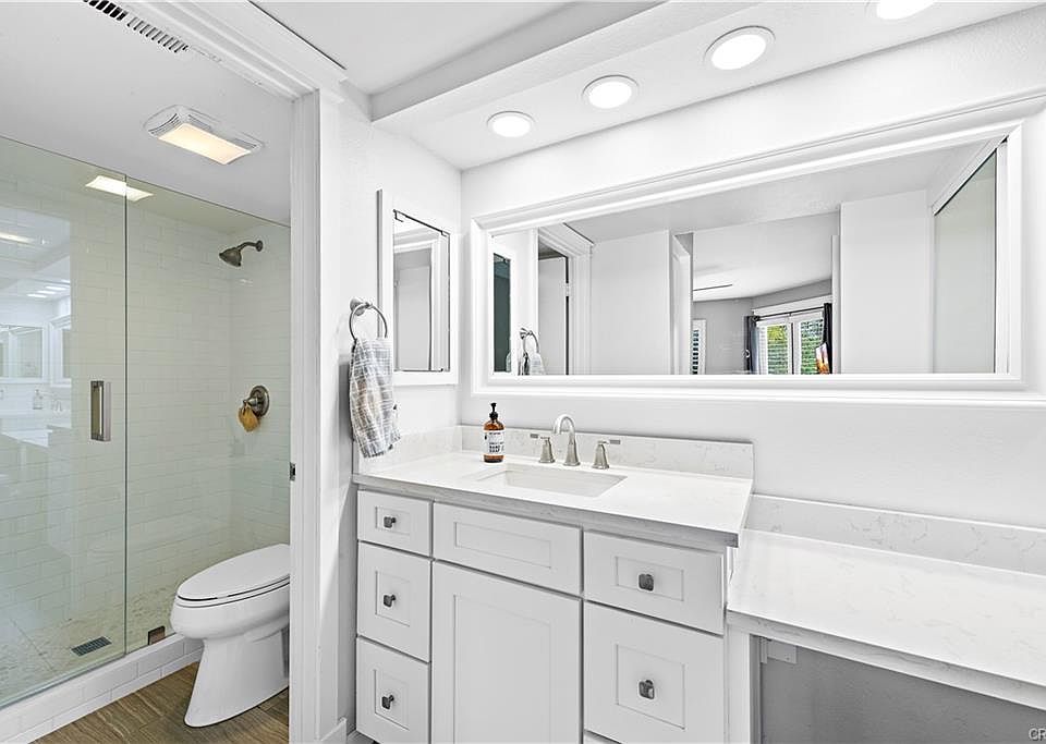 Beautiful ground-floor 2 bedroom condo with 2 bathrooms, a 1 car attached garage, and second dedicated uncovered spot! The master bathroom is gorgeous! Beautifully upgraded shower, vanity, and lighting too! Neutral paint throughout and modern finishes make this home move-in ready! Views from the ground floor of the natural beauty of Rancho Santa Margarita! Pets welcome! Just steps from the Rancho Santa Margarita lake, entertainment, and beach club!