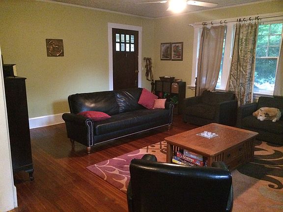 4 br, 3 ba, 2840 sq feet. 1916 arts and crafts bungalow with tons of charm one block from Claxton elementary. Excellent north Asheville neighborhood. The house boasts heart pine floors throughout, stained glass window and original crystal chandelier in dining room. Archway to living room with original Rookwood ceramic tile fireplace in perfect condition! Kitchen with stainless appliances and granite countertops, commercial Castle gas stove with flat top griddle. Downstairs bathroom has a large 2 person jetted tub. Sleeping porch with additional full bath downstairs, as well as large den with authentic reuse, swinging glass country store doors. Also downstairs 1 bedroom currently being used as T.V. Room. Upstairs full bath with clawfoot tub, 3 good sized bedrooms and small bonus room. Huge full basement with high end washer and drier that convey. Nice outside side yard. 38 acre, drive through driveway and custom designed 2 car garage with stunning apartment with vaulted ceilings and exposed beams, oak floors, kitchen with corian counter tops, stained glass, and high end appointments. Garage doors are custom built wooden doors that swing out, garage lighting using recycled Paris cafe 1900's fixtures. Washer/drier in garage convey. House exterior needs repaint and owner is providing $10,000 paint allowance due at signing. 10-15 min walk to downtown. House has excellent roof, architecture shingle roof.? 1500 square foot basement? 2 car garage? central AC? gas heat? attic fan? drive through driveway from Austin to Spears? off street parking? hard wood floors throughout? Covered front porch? back deck? apartment rents for $800/month? apartment deck? lots of closets and storage space 08/11/14