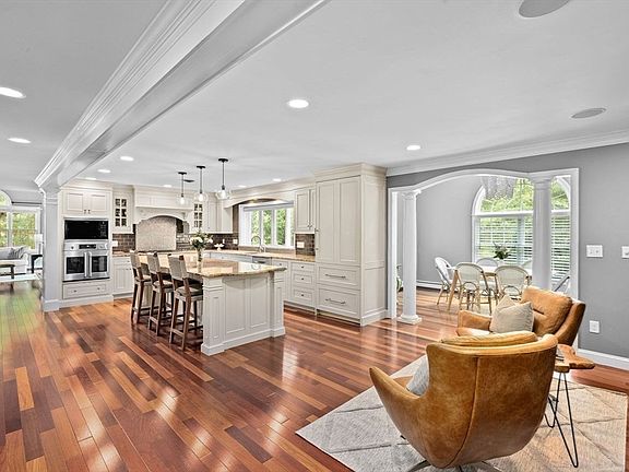 Built to suit an extraordinary lifestyle, with your own private oasis, this magnificent home offers a rare opportunity to have it ALL! Tucked away on a quiet cul-de-sac lane w/1.8 acres of privacy throughout the park-like grounds, featuring an impressive salt water gunite pool & pool house. Breathtaking turquoise water views greet you as you enter into the dramatic foyer. To the left is the first-floor guestroom suite w/private entry. Exuding timeless allure, the stunning chef's kitchen features Wolf, Bosch, & Sub-Zero appliances. Ideal for entertaining & cozy nights by the gaslit fire, the all seasons room will be your sanctuary. The 2nd level is highlighted by the primary suite which boasts a beautiful bathroom, walk-in closet & private bonus room. Additionally, there are 3 beds, full bath, & laundry. Lower level includes media room, living room, & storage areas. This highly sought after location is about a mile to the high school, Hanover Crossing, YMCA, walking trails, & more!