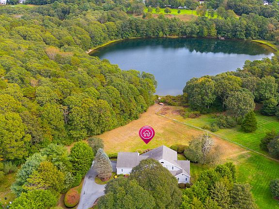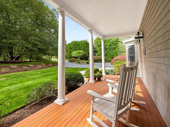 Experience timeless elegance in this 3,300+ sq. ft. architectural showpiece, set on a 1.49-acre lot with serene pond views and glimpses of the Ridge Club. This home blends charm and sophistication, featuring 3 bedrooms, 4 baths, soaring 9-foot ceilings, and a sun-soaked living room with a gas fireplace, custom built-ins, and a bay window. The first-floor primary suite boasts a cathedral ceiling, en-suite bath, and walk-in closet, while the gourmet kitchen and dining areas invite gatherings. Upstairs offers two spacious bedrooms and two versatile bonus rooms. The expansive walkout basement adds endless possibilities. Outside, a charming farmer's porch and a sprawling deck provide perfect spaces for relaxation. This is Cape Cod luxury living at its finest.