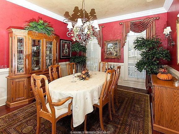This is an elegant home with long lagoon to golf views of the 16th & 17th holes with a peek at the Port royal sound in the distance. Beautiful 4 bedroom, 5.5 bath home with 6,540 sq. ft. of living space. Very well maintained with top of the line appliances, multiple rooms with 2 offices, 2 wet bars, a game room with pool table and exercise room. This home is being sold furnished!