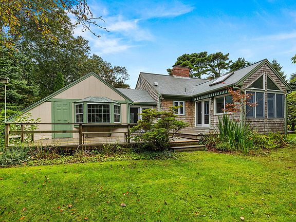 Imagine listening to the sounds of the sea from the deck of this classic Cottage style home, located less than 1/4 mile from East Sandwich Beach & a few miles from historic Sandwich Village. Enjoy one level living in an established neighborhood; with updated windows & heating system, it offers excellent potential as a starter home, retirement home or second home. Lovingly cared for over the years & set among mature plantings, this gem is a gardener's and nature lover's delight. Hardwood graces the main Living areas & Bedrooms, while dual fireplaces enhance the Living & Dining Rooms. The Living Room is a quiet retreat, separate from the open Kitchen/Dining/Sunroom space that opens to the multilevel deck & back yard. Newly renovated full Bath, with Primary BDRM featuring private Half Bath. Ideal Den/Office with built-ins, pet friendly mudroom, attached oversized garage & full finished basement appeal to everyone's wish list. Move in & update to your personal taste over time, or bring along a Designer for a contemporary makeover. Once you're settled in, enjoy the bonus amenities of salt air, salt marshes & spectacular beaches.