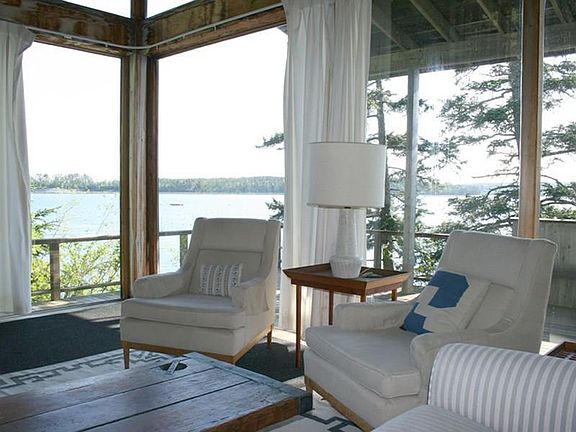 Gilpatrick Cove opens to the Great Harbor and the mouth of Somes Sound as the western mountains of Mount Desert Island shape the background. Listen to the tide roll in and out from the deck of this contemporary 3-bedroom cottage built to melt into the landscape while absorbing the ocean view and sunset. The main house enjoys an open air style perched high on the granite shore. In 1984, a 3-bedroom guest house was built to enjoy this site all year-round. Close to the village and Acadia National Park. Dynamic.