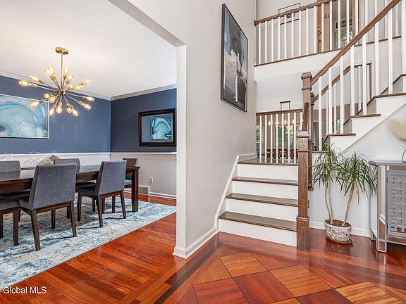 Welcome to Barrington Ct, a beautiful 4 bedroom, 2.5 bath colonial centrally located in the South Colonie school district! This home boasts an updated eat in kitchen with stainless appliances, beautiful hardwood floors and updated bathrooms. There is one bedroom on the first floor that is currently being used as an office and 3 bedrooms upstairs as well as a fantastic walk-in closet /flex space with built-ins. Additional features include 2 zone heating and cooling, second floor laundry and 2 car attached garage. A lovey fenced in backyard with shed, deck and retractable awning complete this special home. Conveniently located just minutes from all the wonderful things Colonie has to offer!
