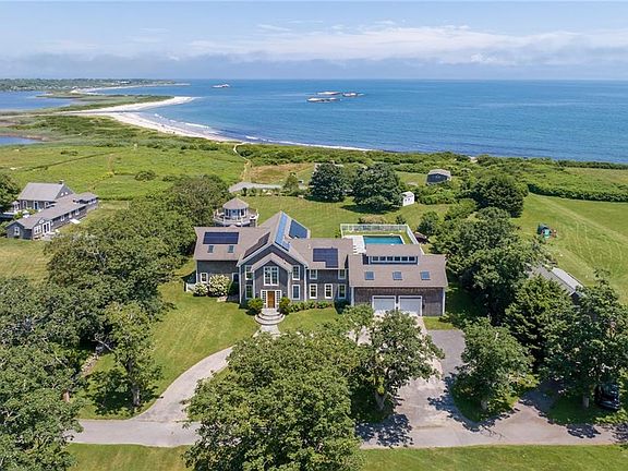Magnificent 7,000 sqft home with stunning views of Phillippis Beach, Briggs Marsh and the Atlantic Ocean. This barn-style post and beam home was thoughtfully designed to maximize the ocean views and accommodate a multi-generational family - with 3 bedrooms, a kids wing with 4 bunk beds, 3 full bathrooms and 1 half bath, an extra-large kitchen with multiple cooking areas, and an incredible Great Room featuring two-story floor-to-ceiling windows. Located on Little Compton’s highly sought after Warrens Point, this is a once-in-a-lifetime opportunity to own a landmark property in one of the most desirable locations along the Farm Coast. Buyer pays Little Compton Agricultural Conservancy Tax at closing.