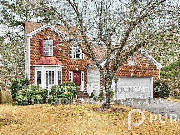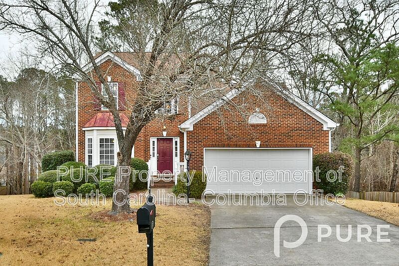 Great 4 bedroom, 2.5 bath home in The Oaks at Lake Carolina in NE Columbia. This brick-faced home w/ a 2-car garage sits on a cul-de-sac lot, and has a fenced backyard w/ stone patio and screened porch overlooking a wooded area. Inside boasts laminate hardwood flooring throughout the main level. Two-story foyer and arched opening into the formal dining room w/ bay window. The kitchen features granite counter tops, tile backsplash, pantry, and included stainless steel smooth-top stove, built-in microwave, dishwasher, and side-by-side refrigerator. Family room has a ceiling fan and gas log fireplace. Primary bedroom suite downstairs w/ a trey ceiling, bathroom w/ double sinks, granite counters, garden tub, tiled shower, and walk-in closet. Half bath and laundry room off the garage. Three additional bedrooms, a 2nd full bath, and walk-in attic storage upstairs. All bedrooms have ceiling fans. Convenient to I-20 & I-77, NE Columbia amenities, and Fort Jackson. Richland 2 schools. All PURE Property Management residents are enrolled in the Resident Benefits Package (RBP) which includes renters insurance, HVAC air filter delivery (for applicable properties), credit building to help boost your credit score with timely rent payments, $1M Identity Protection, move-in concierge service making utility connection and home service setup a breeze during your move-in, our best-in-class resident rewards program, and much more! More details upon application. No Pets Allowed