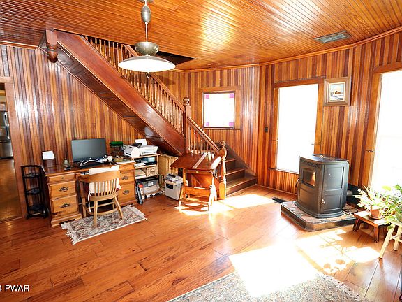 Wow! A majestic turn-of-the (last) century home doesn't come along often! This very private, immaculately maintained farmhouse will amaze you with its incredible original details, such as tongue and groove walls, gleaming wood floors, even a stained-glass window, indicative of the legendary Kohler-built homes of the era. With 4 spacious bedrooms and 2 full baths, plus a modern, efficient kitchen, there's plenty of room for your family and friends. The huge living area has a pellet and woodstove to complement the forced-hot air heat powered by LP gas. The large deck is a great addition; allowing for outdoor dining/entertaining in the nice weather. Huge 28x24 2-story barn has so much space for vehicles, machinery, toys, storage! Gardeners take note: the greenhouse will help you get a jump on crops, and there is a fenced garden area. The lush 5-acre lawn lends itself to even more gardening or grazing for horses, livestock or chickens. The house is privately-set on a quiet road, but you're so close to everything. Delaware River access is 5 minutes away for water fun. Callicoon just 10 minutes away for shops. eateries. Honesdale is 25 minutes for big box stores. Don't miss your chance for complete serenity and a home like no other!