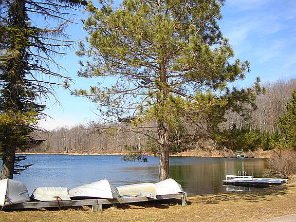 THE IDEAL LOCATION! Lake in the Clouds East is a Commuters Dream between Stroudsburg-Mt.Pocono and Lake Wallenpaupack. Blending privacy with nature, this Ranch on almost an acre has Main level living open floor plan with cathedral vaulted propane field stone Fireplace and multiple glass sliders for wrap sun deck. Located in a cul-de-sac, Fun walk to community swimming and boating pond with picnic Pavilion WHERE Winding STREETS are TREE LINED by Forest and EVERY SEASON IS BEAUTIFUL!