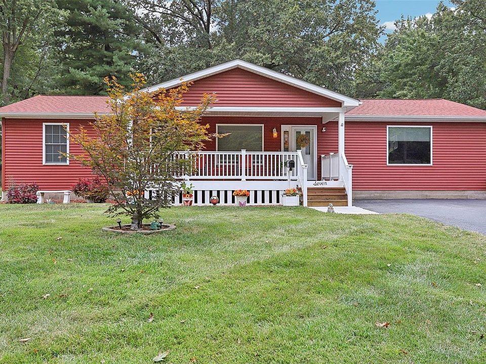 Built in 2019 with meticulous attention to detail, this stunning home is situated on a serene court, surrounded by mature trees and a peaceful backyard oasis. The partially open-concept layout features gorgeous laminate flooring throughout the primary living areas, while the kitchen and dining spaces are enhanced by elegant marbled tile. The spacious kitchen is a chef's delight, complete with a pantry, breakfast bar, and ample counter space. The primary suite is truly a retreat, boasting an impressive walk-in closet and a luxurious en-suite bathroom—perfect for starting and ending your day. Designed with a split-bedroom floor plan, this home ensures privacy and space for all. Step outside to enjoy fall evenings on the brand-new covered front porch, or host gatherings on the expansive rear deck — ideal for outdoor entertaining. The backyard also features a matching shed for additional storage and a pool. This home is a rare find, offering modern amenities at an incredible value