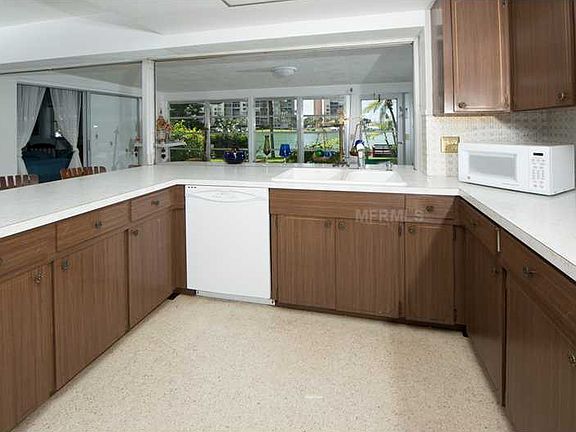 BOATER'S DELIGHT ON PARADISE IN TREASURE ISLAND PRICED FOR QUICK SALE! Waterfront classic ranch home on deep sailboat water. Fabulous Intracoastal location with quick access to bay and Gulf of Mexico. 75' seawall, dock and large shaded backyard with room for a pool. Pleasing floor plan with foyer entry, formal living and dining room, family room, kitchen with bar and sliders pocket to 11 x 42 Florida room with storm shutters. 1,676 Heated Square foot main house, with a 504 square foot Florida room NOT included in heated square footage. This space is under main roof, pocketing sliding glass doors open the entire space to living area. Pristine yet original condition, this home has been amazingly well maintained throughout the years. White Terrazzo floors, perfect condition tile, split bedroom plan and stunning southern water views from most rooms. Newer central heat & air, tile roof updated, seawall updated, irrigation system on reclaimed water. Located in a neighborhood of fine waterfront homes, near beach, restaurants and attractions.