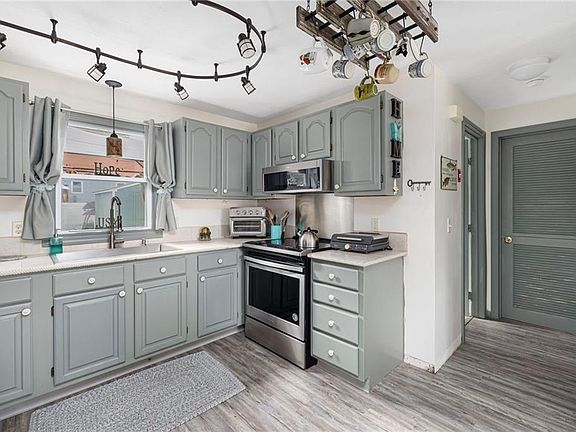 Fenced yardSeveral storage shedsSmall deckLarge eat-in kitchenNew vinyl sidingPlenty of natural lightDouble closets