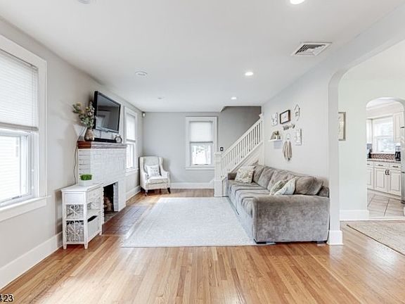 Perfect mix of classic charm and modern updates in this immaculate 3 bedroom colonial just a few blocks to schools, park and Cranford's bustling downtown! Adorable entry foyer greets you as you enter. Large sunlit living room with wood burning fireplace, formal dining room, eat in kitchen with beautiful cabinetry, granite counters, stainless appliances and large pantry. Second floor boasts 3 large bedrooms with ample closets and modern bath with shower over tub. Full finished basement makes a fantastic family room with bar, powder room and loads of storage. Spacious, fully fenced yard with covered patio and space to play and entertain. Newer 2 zone HVAC, newer roof, siding and windows, tankless water heater, hardwood floors, detached garage, freshly painted interior and loads of character!