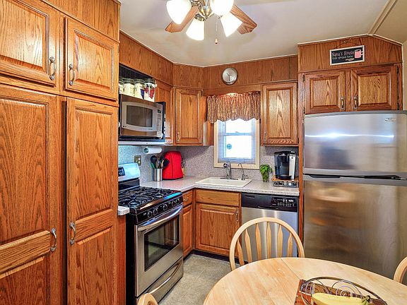 Home sweet home. Pride of ownership is evident throughout this lovingly maintained and updated 3 bedroom split level home. Updated eat in kitchen with stainless steel appliances and corian counter top. There is also a bonus room off of the kitchen. Newer windows, updated baths, and hardwood floors throughout. Living room and dining room have vaulted ceiling overlooking beautiful level yard. Meticulously maintained.