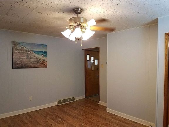 Home has hardwood flooring in living room, upstairs bedrooms, and attic. New roof installed in 2020, large detached garage, large fenced in yard and walk out basement with additional shower and lots of room for storage.