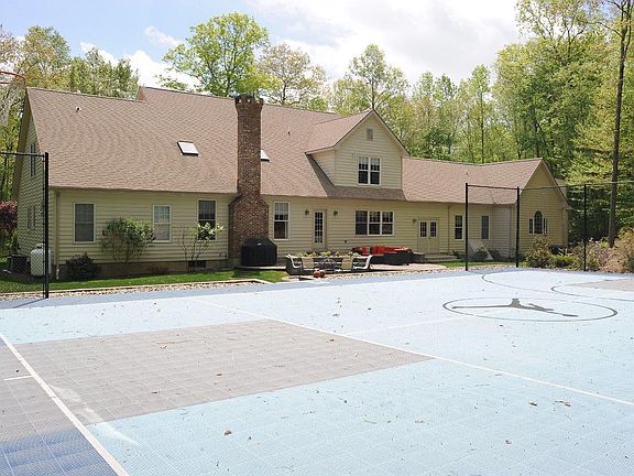 Stunning SUN-DRENCHED 5BR home with 4RM/1BR in-law with separate entry; 3 car garage on beautiful cul de sac! Adorn with details including vaulted ceilings, elaborate trim, HW floors, 2 fireplaces, stonework, outside basketball court! 4 room In-Law has both interior & exterior access! Main house features 2 story greatroom with HW flrs, floor to ceiling raised hearth stone fireplace, exposed beams & open balcony. Smashing white kitchen with HW flrs, granite counters, center island breakfast bar, second island, double ovens & eating area. Formal DR with HW flrs, columned entry, crown molding & wainscoting. 1st flr MBR suite w/HW flrs, luxurious bath w/Jacuzzi tub and separate glass door shower and adjacent main floor office with French doors. Main floor updated laundry room, mudroom with access to beautiful back yard. 2nd flr includes: expansive loft with HW flrs overlooks great room; additionally, FR/Media room wired for surround sound; 3 gracious sized BRs (each with access to bath). In-law is handicap ready, features kitchen and living room w/vaulted ceiling, HW flrs, BR w/full bath as well as 2nd bath and access to finished bonus room/office (its own garage & deck)! 2 separate basements, separate heating/central air for added comfort. ** Fabulous outdoor entertaining ** Private, beautifully landscaped yard with stone walk, stone patio with side walls w/lighting, firepit, BASKETBALL COURT w/fencing, nighttime lighting and wired for sound and outdoor TV! A truly special home!