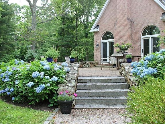 Country home in estate setting on Blue Acres Way, a private lane w 5.5+ acres. Elegant entry onto open foyer w/columned living room & granite fireplace.Impressive dining room offers teak parquet flooring, chair rail,crown molding & french doors. Gourmet kitchen w/walnut cabinetry, granite counters, island & pantry.Large eating area for entertaining family & friends w/doors onto stone terrace. Step down family room w/floor to ceiling brick fireplace. 12' palladium window has a "wow" factor & doors leading to stone terrace. Large office for that CEO w/mahogany wainscoting. Master bedroom includes lovely sitting area w/walk-in closet plus 2 other closets. Loft is accessed by a separate staircase w/cathedral ceiling, & skylights, perfect for hobbyist/exercise room Additional 2+ car garages for antique cars/boats. Pergola, stonewalls, privacy & tranquility. .Meander up the tree lined driveway onto this beautiful home with magnificent grounds. Option of 2 lots perfect for family compound.