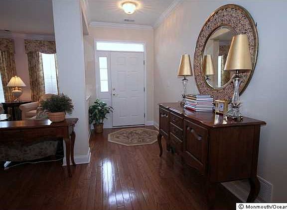 Stucco front Bonaire model home w/lots of extras including wood flooring, window treatments, stainless appliances & lots of closets! Formal living & dining rooms w/crown moulding. Kitchen w/stainless appliances, large pantry, breakfast counter & nook. Family room w/French doors opens to sunroom. Master bedroom suite is complete w/master bath, double vanities & stall shower. Guest bedroom & full bath. Garage extended 4ft to accomodate staircase to walk up storage area. Patio w/awning for shade. Brokered And Advertised By: RE/MAX at Barnegat Bay Listing Agent: Jeanmarie McSpedon
