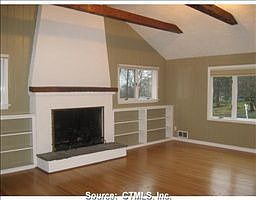 Four bedroom ranch on Cranbury cul-de-sac with 0.55 acre. Newer kitchen and 2.5 stunning baths. Living room with cathedral ceilings, exposed beams and wood burning fireplace. Large family room with doorway to rear deck. Master bedroom with full bath, walk-in closet and sliders to deck. Hardwood floors. Over-sized 2-car garage. Basement with lots of storage. 1999 Norwalk town hall permit shows installation of capped pipe leading to sewer in street. Subject to relocation clause.