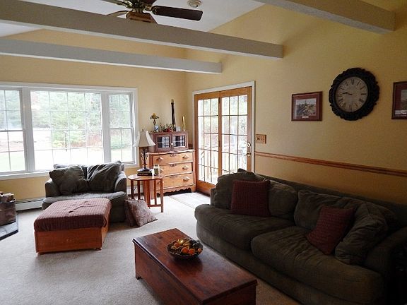 Wonderful ranch style home boasts a spacious family room addition with cathedral ceiling, woodstove & a slider to rear deck, patio & grounds. Open floor plan with eat-in kitchen and breakfast bar plus a formal living room. Total of three bedrooms feature a comfortable Master bedroom with ensuite bath. Super level yard with above ground pool, great for summer fun and sports. Close to Rte. 495 for ease of commute.
